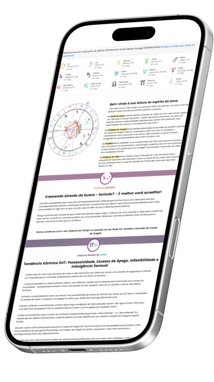 Este mapa é mais do que uma simples leitura; é um guia de autoconhecimento que o ajuda a trilhar o caminho para se tornar quem realmente veio ao mundo para ser e a realizar o que está destinado a alcançar.